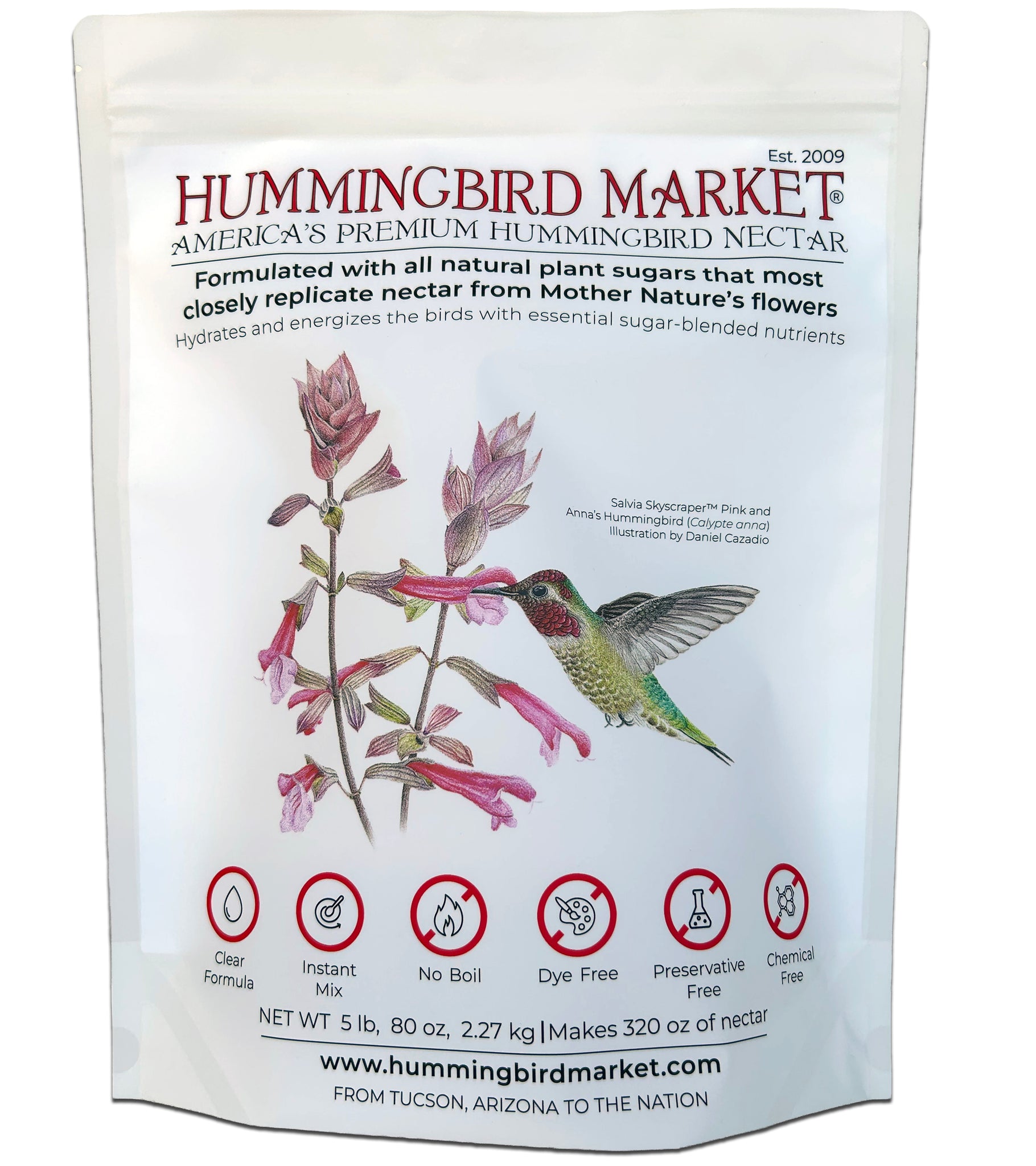 5 lbs/ 80 oz pouch makes 320 oz of nectar.